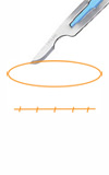 Nadat de huid steriel is afgedekt wordt er een ellipsvormige snede in de huid gemaakt tot in het oppervlakkige vetweefsel. Eventuele bloedvaatjes worden met een stroomstootje dichtgebrand. Daarna wordt de huid in twee lagen gehecht. De onderhuidse hechtingen zorgen voor stevigheid en lossen in ongeveer 120 dagen op. Voor een mooi cosmetisch resultaat wordt aansluitend de opperhuid gehecht. Deze hechtingen blijven een tot twee weken zitten waarna ze op de polikliniek worden verwijderd. De wond wordt afgedekt met hechtpleisters en een drukverband.